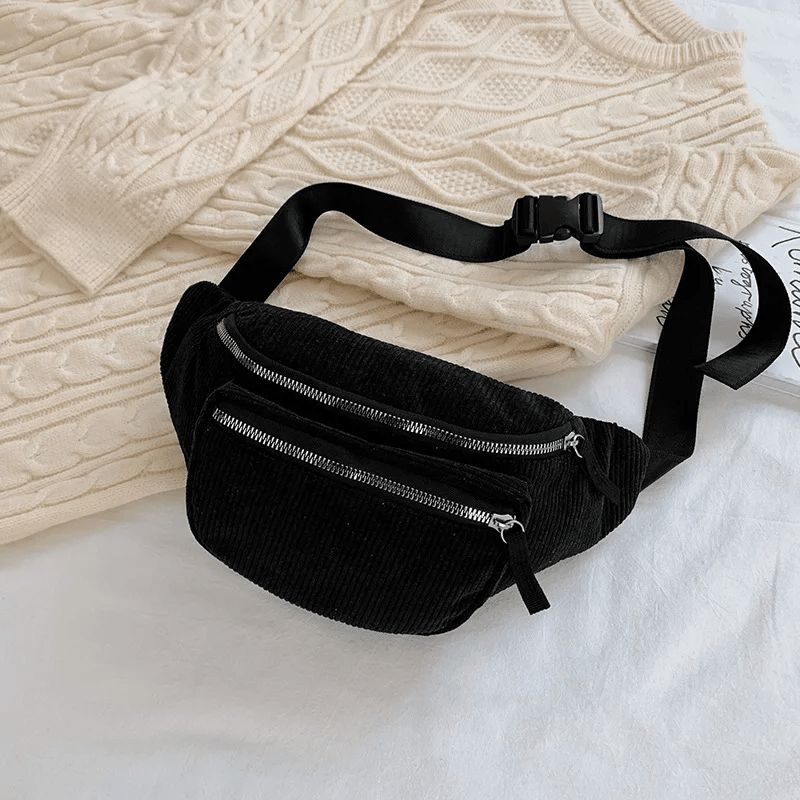 Banane Streatwear En Velours Côtelé Noir : votre nouvel allié